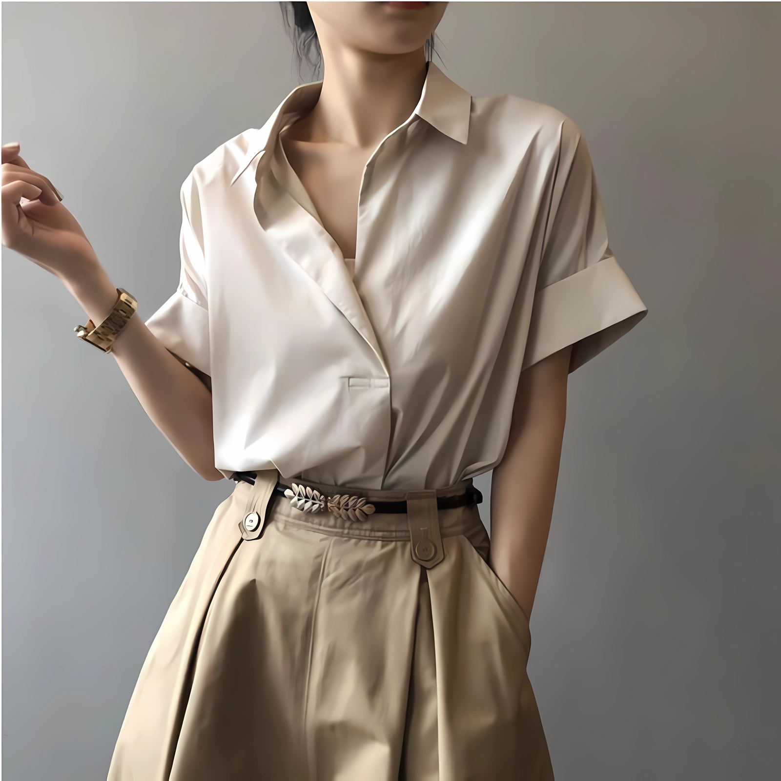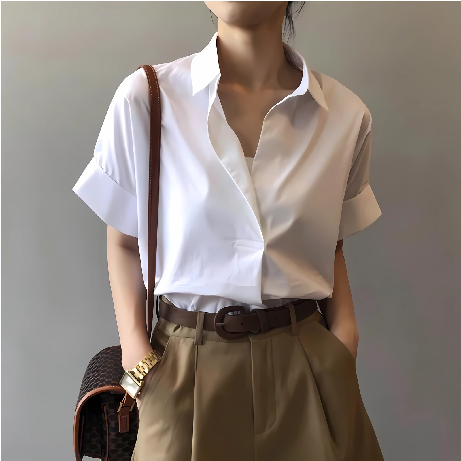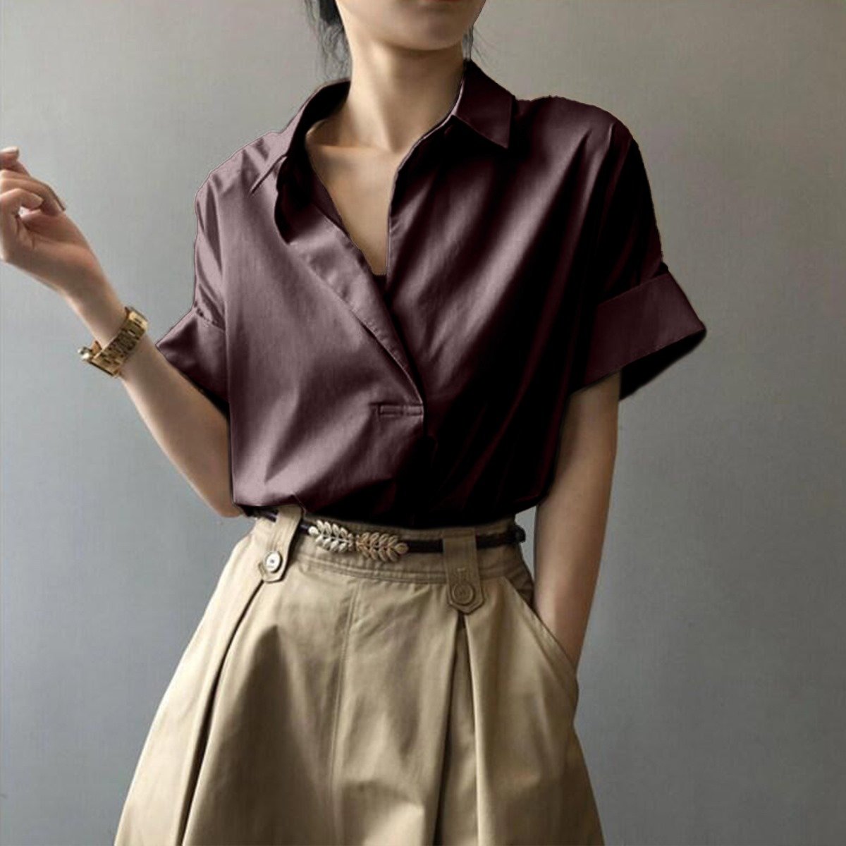 Prqueenfashion – Cocoa Top Kemeja Basic Casual Cewek Korean Style