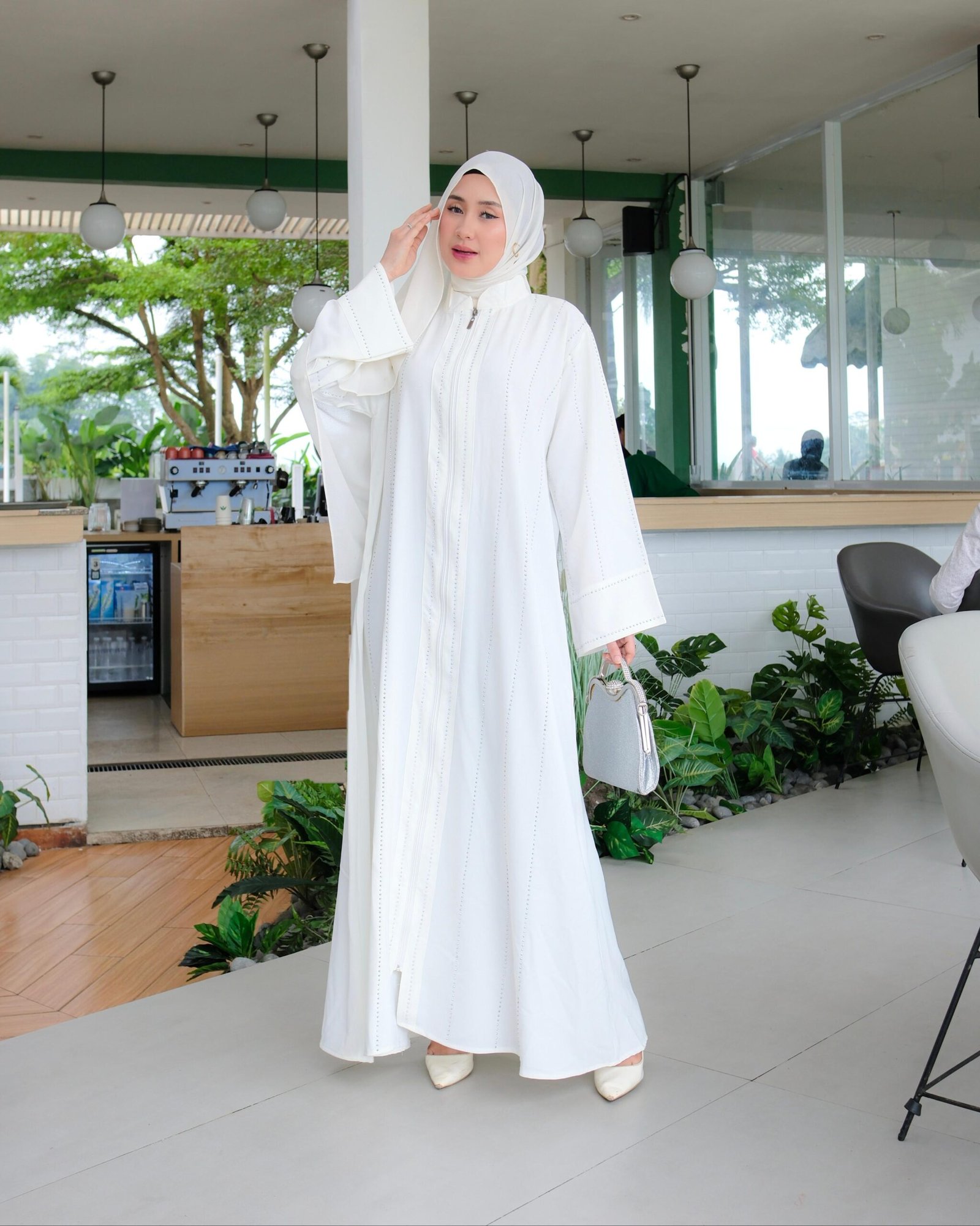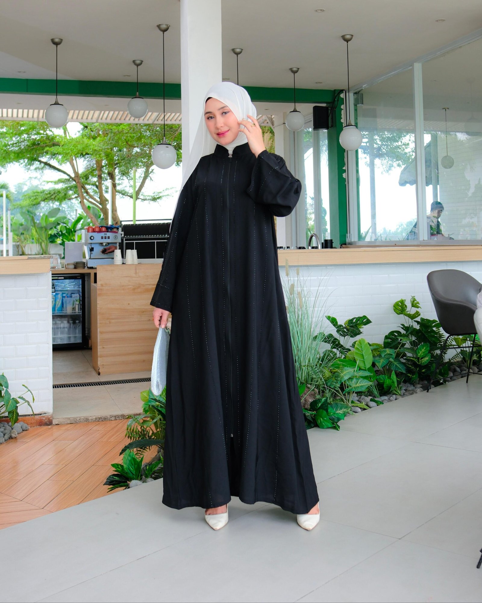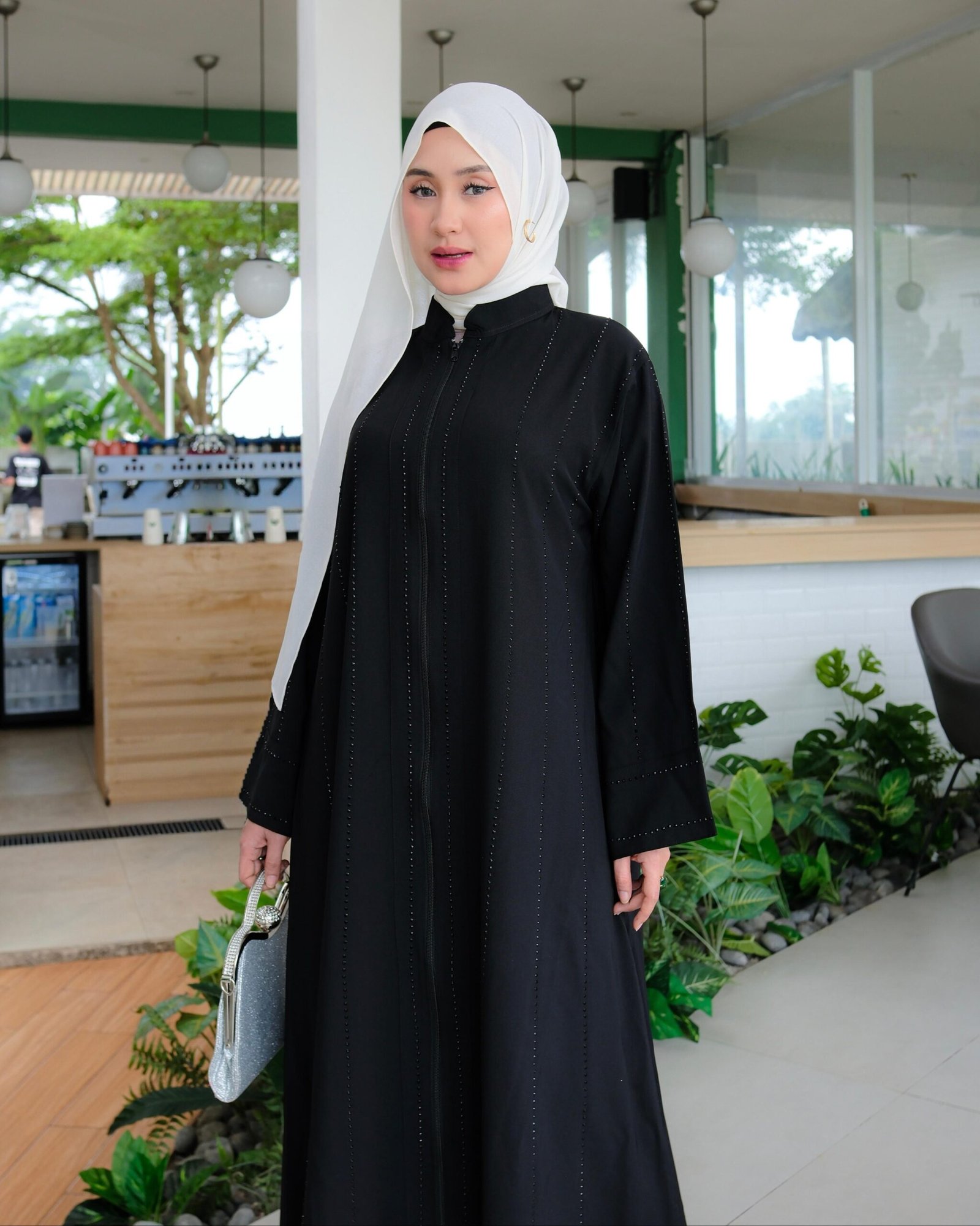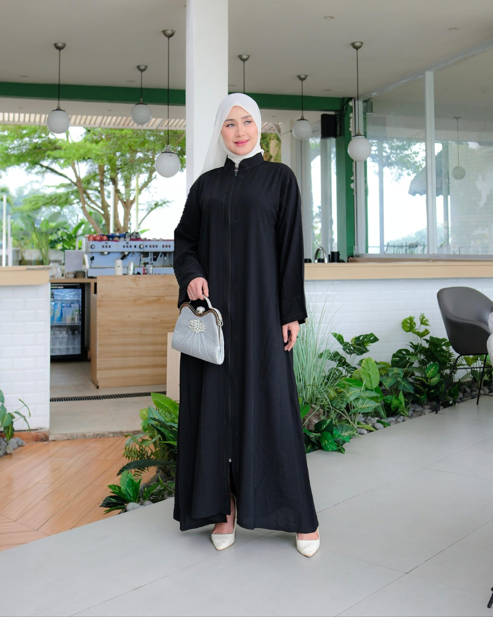 Abaya wanita berbahan Sabrina premium dengan desain elegan dan syar’i, cocok untuk kamu yang ingin tampil anggun di berbagai acara. Dihiasi manik premium look Swarovski yang memberikan kesan mewah tanpa berlebihan. Dilengkapi full resleting depan, abaya ini sangat praktis untuk busui & wudhu friendly. Model lengan kimono memberikan tampilan flowy, longgar, dan nyaman dipakai seharian.