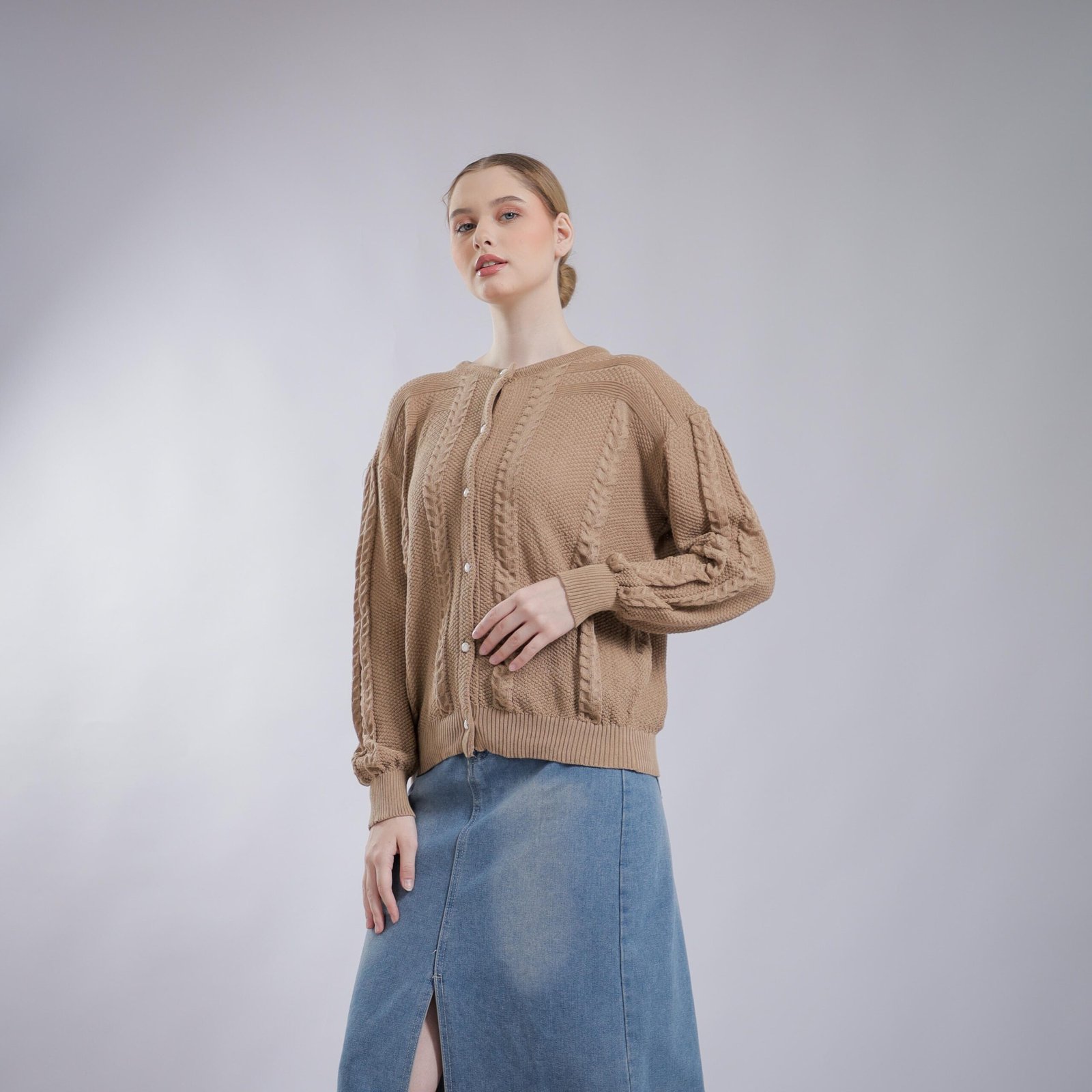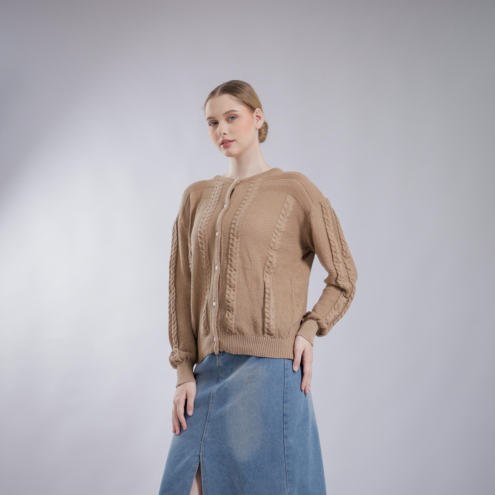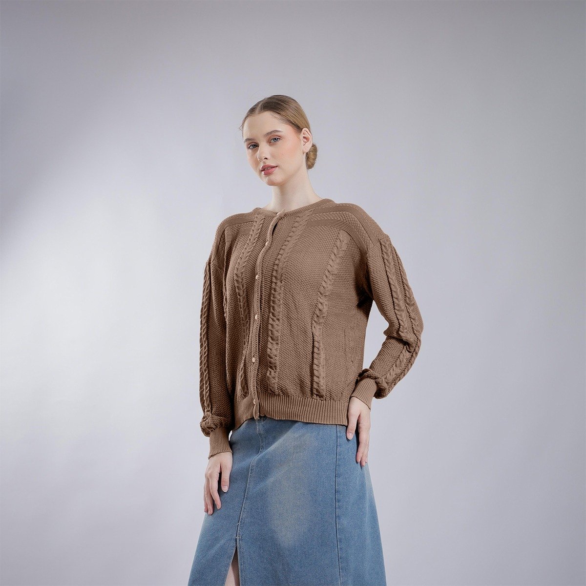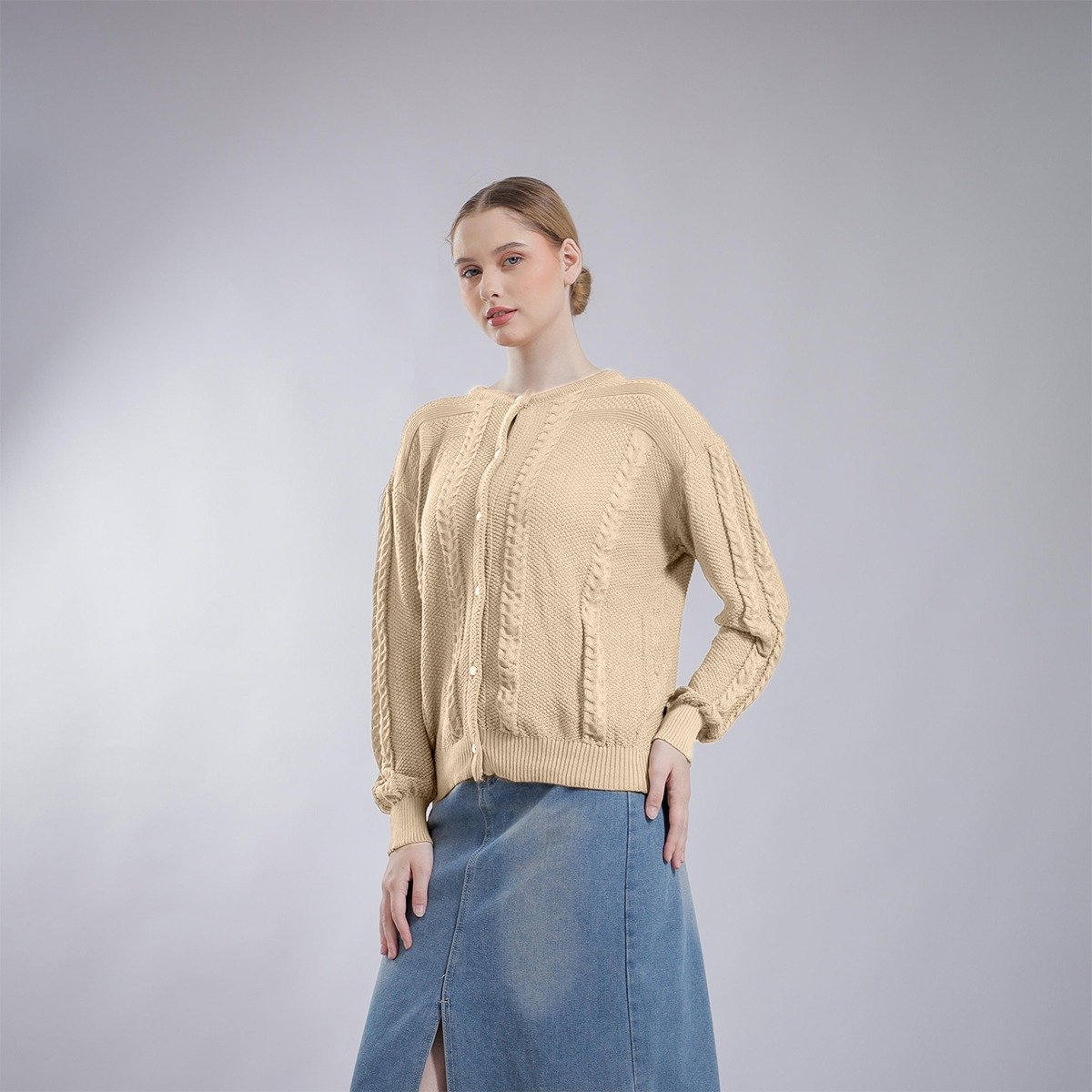 Lengkapi gaya harianmu dengan Cardigan Rajut Cable Wanita berbahan rajut premium yang lembut, tebal, dan nyaman dipakai. Motif cable knit memberikan kesan klasik, elegan, dan timeless, cocok untuk kamu yang suka tampilan rapi namun tetap santai. Desain kancing depan memudahkan styling sebagai outer maupun atasan, pas untuk daily wear, kerja, hingga hangout.