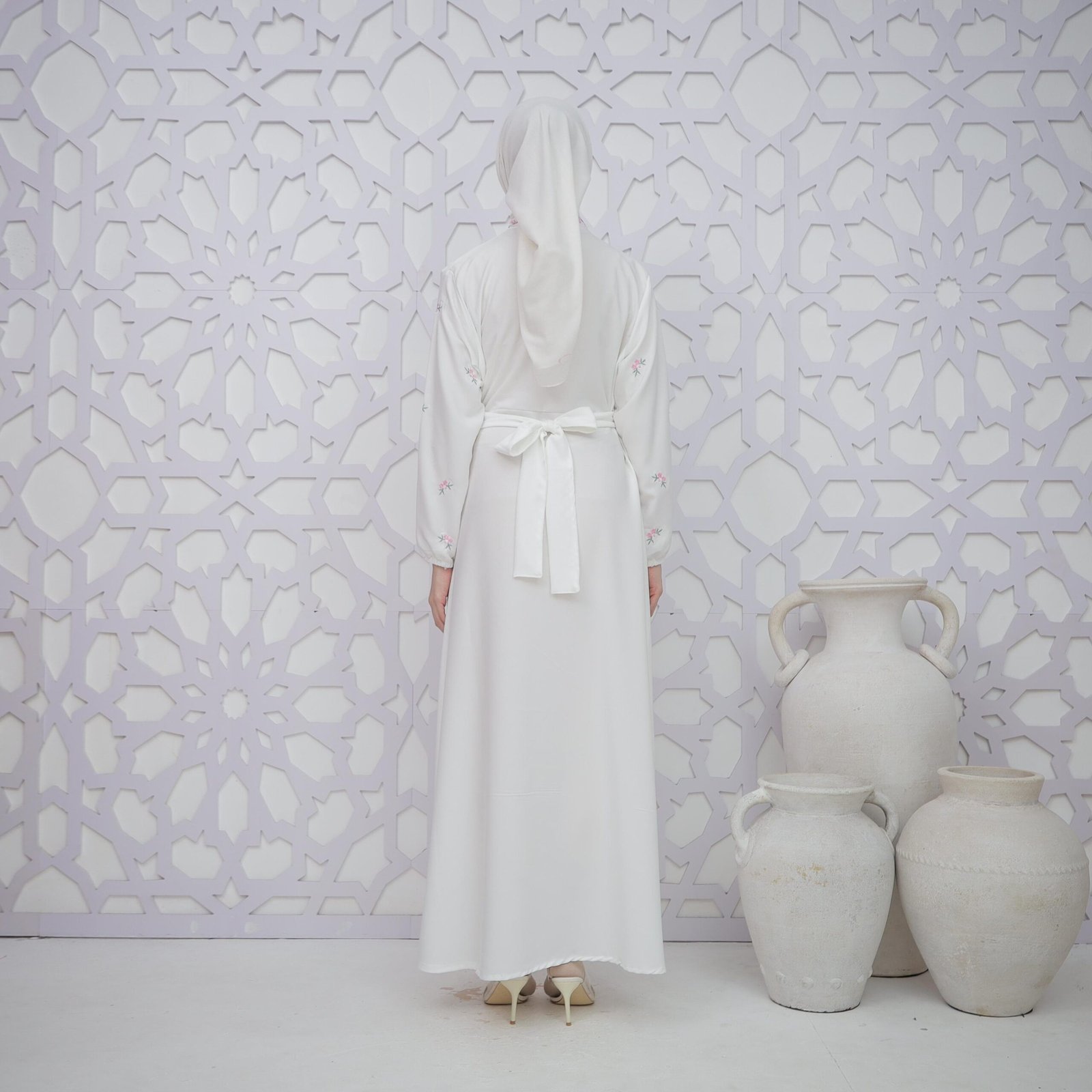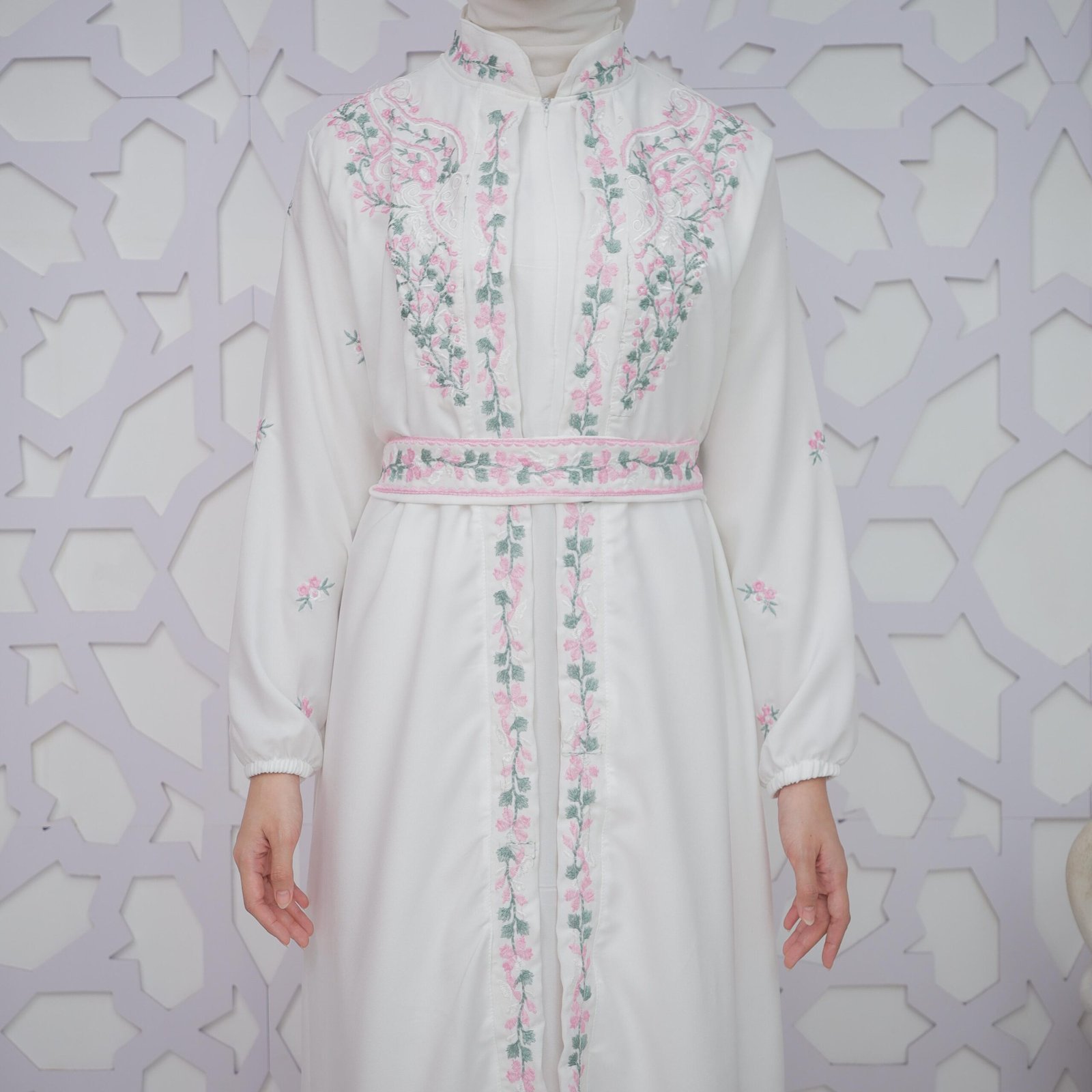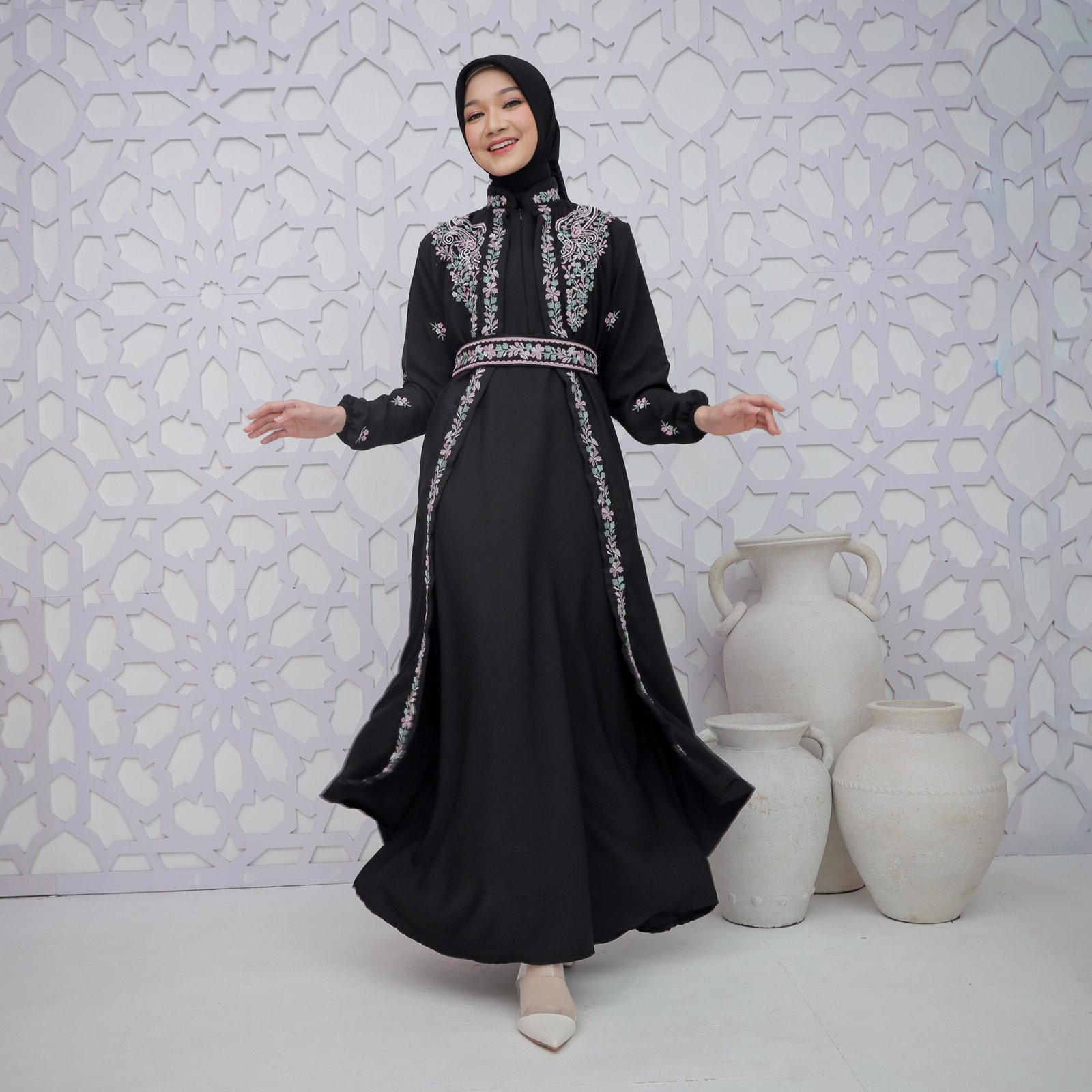 Spesial launching Radwah Abaya dengan desain yang elegan dan mewah untuk melengkapi outfit lebaran 2026. Model abaya dengan inner dan outer yang terpisah. Dihiasi dengan bordir bunga yang cantik mulai pada leher, lengan, serta sepanjang sisi tengah bagian depan, bordir ini menggunakan kombinasi warna pastel yang mempercantik tampilanmu. Serta free belt yang adjustable, membuat lebih ramping dan loose. Radwah Abaya ini memberikan gaya yang anggun, modern, namun tetap mempertahankan kesan klasik dan sopan, cocok digunakan dalam berbagai kesempatan spesial.
