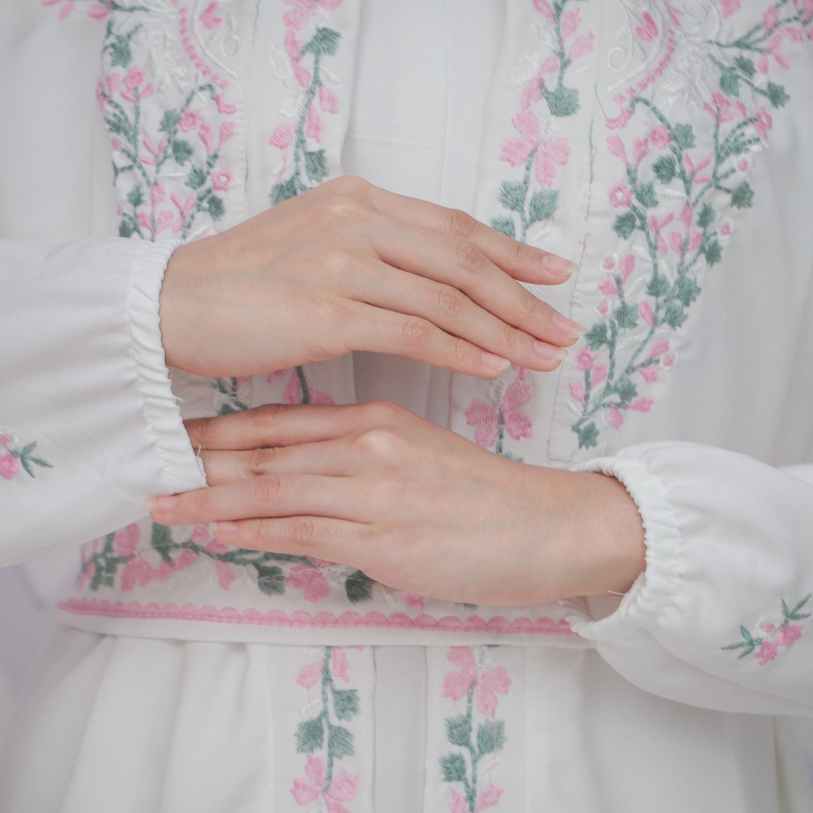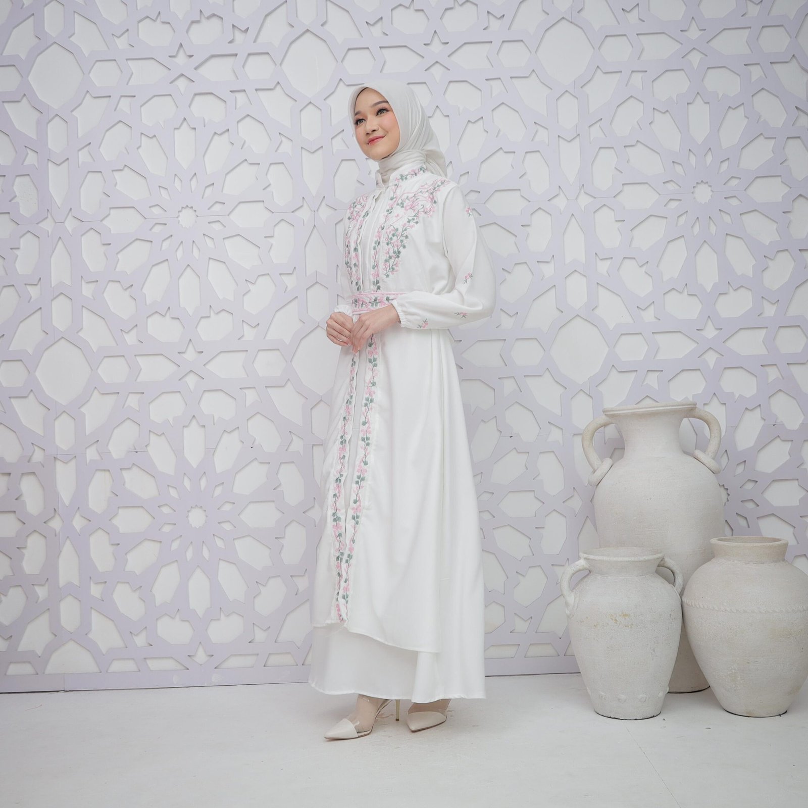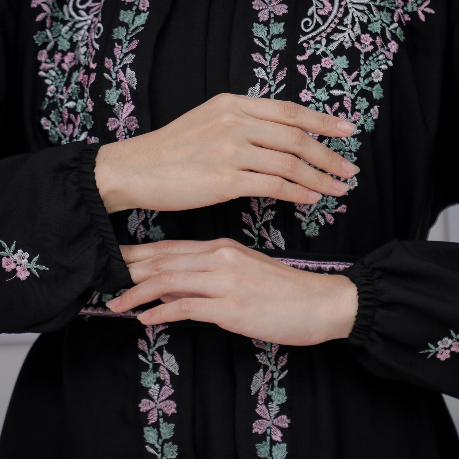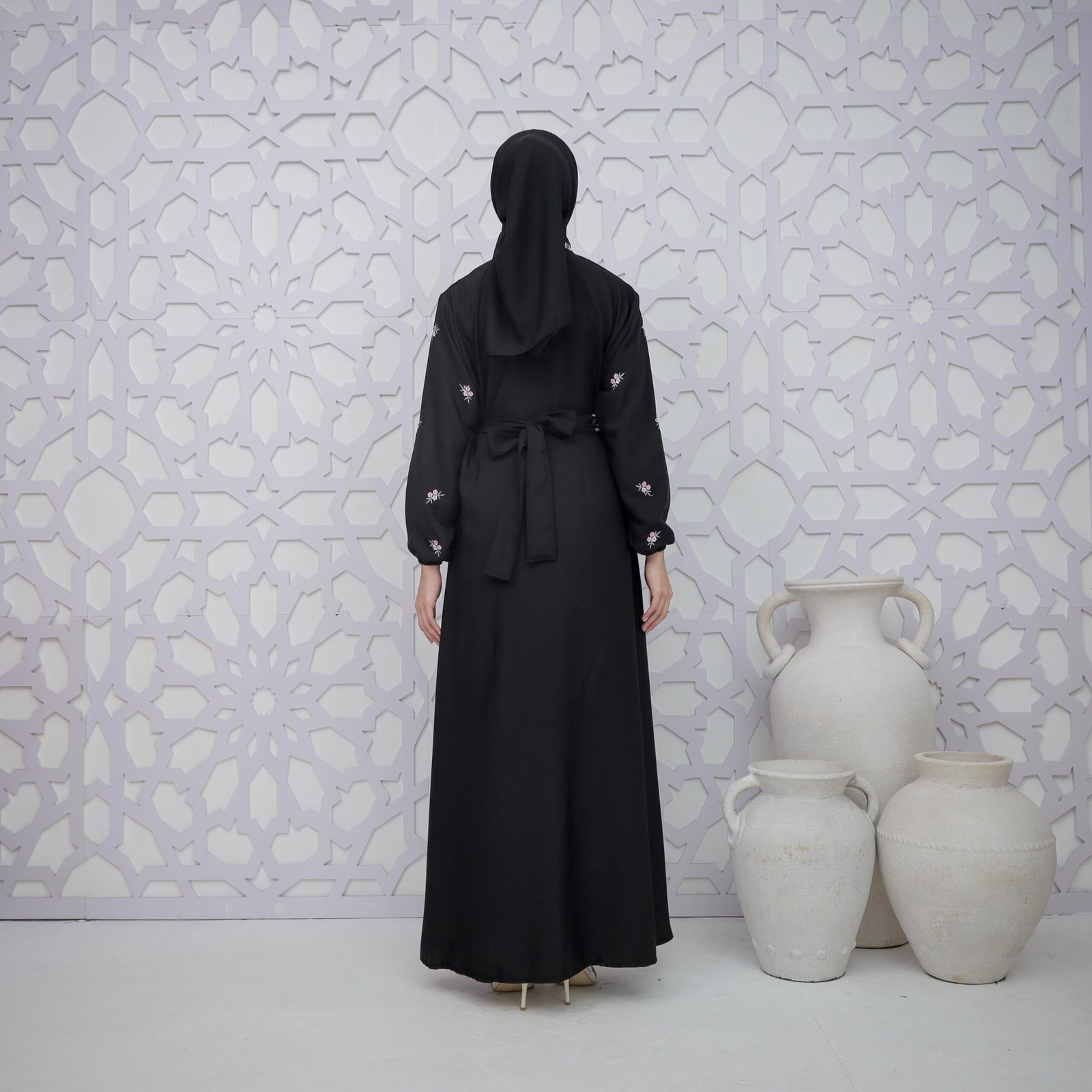 Spesial launching Radwah Abaya dengan desain yang elegan dan mewah untuk melengkapi outfit lebaran 2026. Model abaya dengan inner dan outer yang terpisah. Dihiasi dengan bordir bunga yang cantik mulai pada leher, lengan, serta sepanjang sisi tengah bagian depan, bordir ini menggunakan kombinasi warna pastel yang mempercantik tampilanmu. Serta free belt yang adjustable, membuat lebih ramping dan loose. Radwah Abaya ini memberikan gaya yang anggun, modern, namun tetap mempertahankan kesan klasik dan sopan, cocok digunakan dalam berbagai kesempatan spesial.
