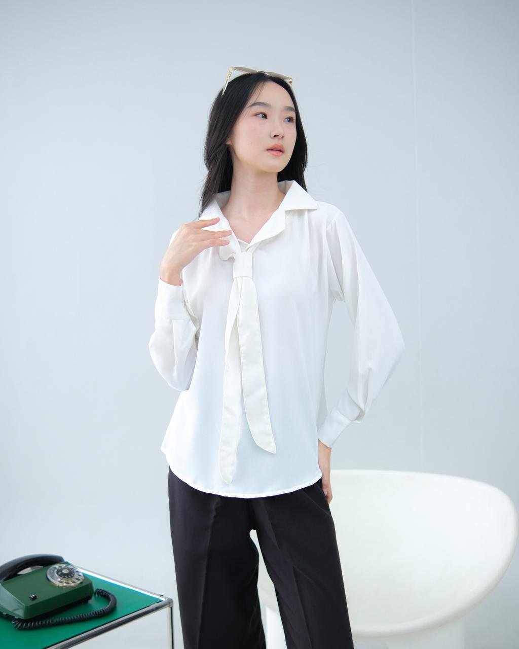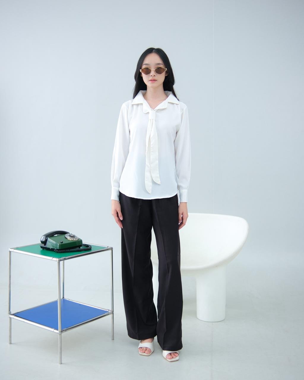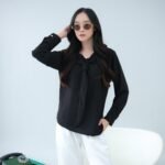 Tampilkan kesan elegan, profesional, dan feminin dengan Blouse Wanita berbahan Sabrina Premium. Desain simple dengan aksen tali leher (tie neck) memberikan sentuhan classy tanpa terlihat berlebihan, sangat cocok untuk tampilan kerja maupun acara formal. Bahan sabrina yang halus dan jatuh membuat blouse ini nyaman dipakai seharian tanpa rasa panas.