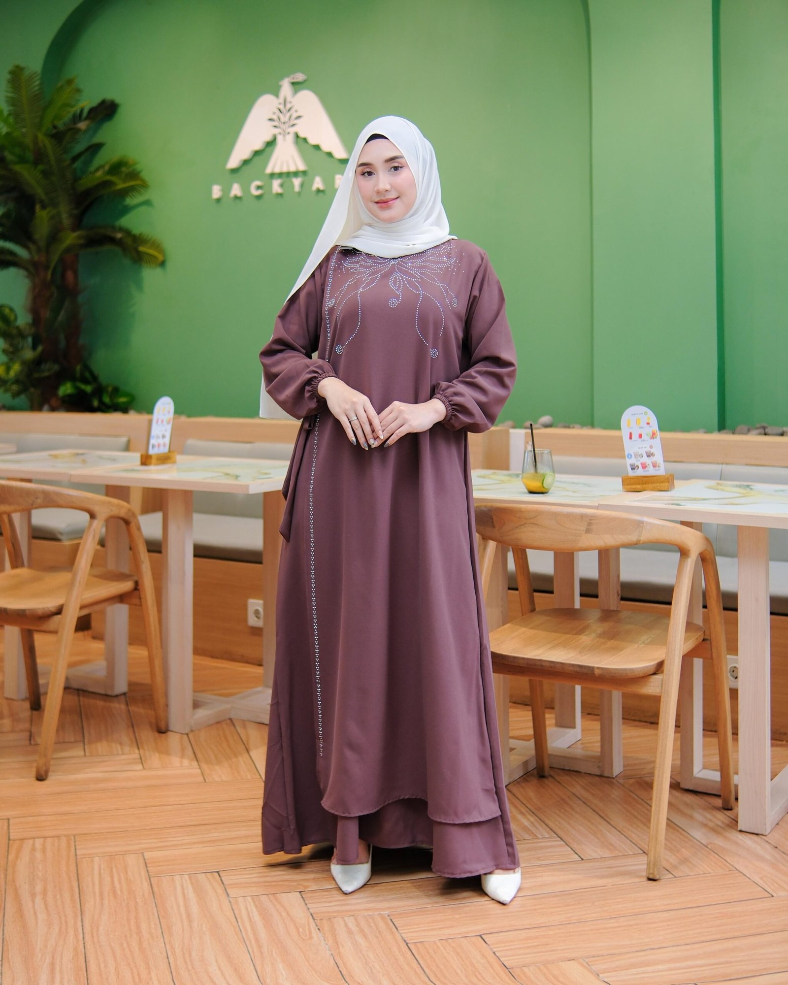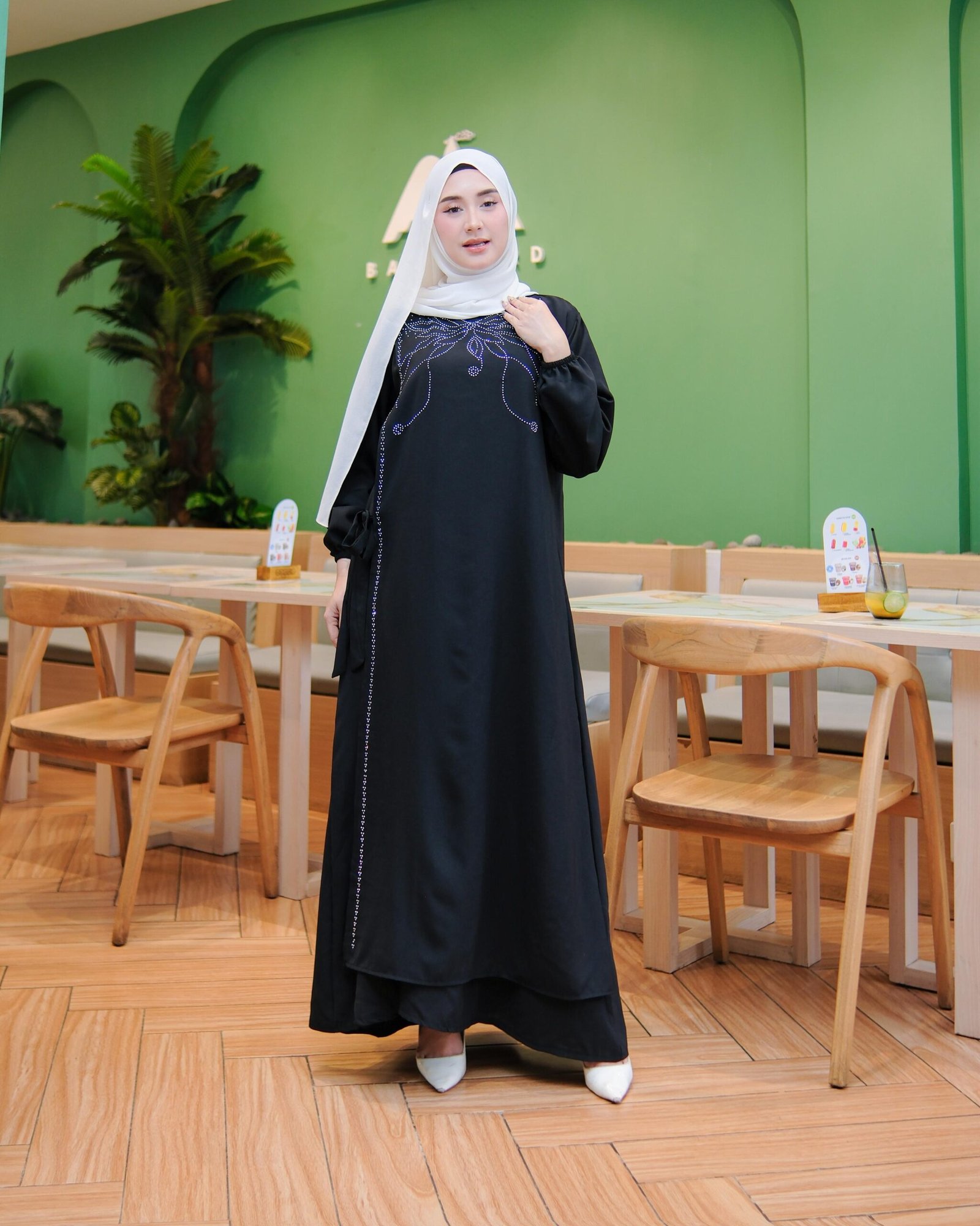 Tampil anggun dan berkelas dengan dress berbahan Sabrina Premium yang jatuh lembut dan nyaman dikenakan sepanjang hari. Dress ini dirancang dengan siluet longgar yang memberikan kesan elegan sekaligus tetap syar’i.