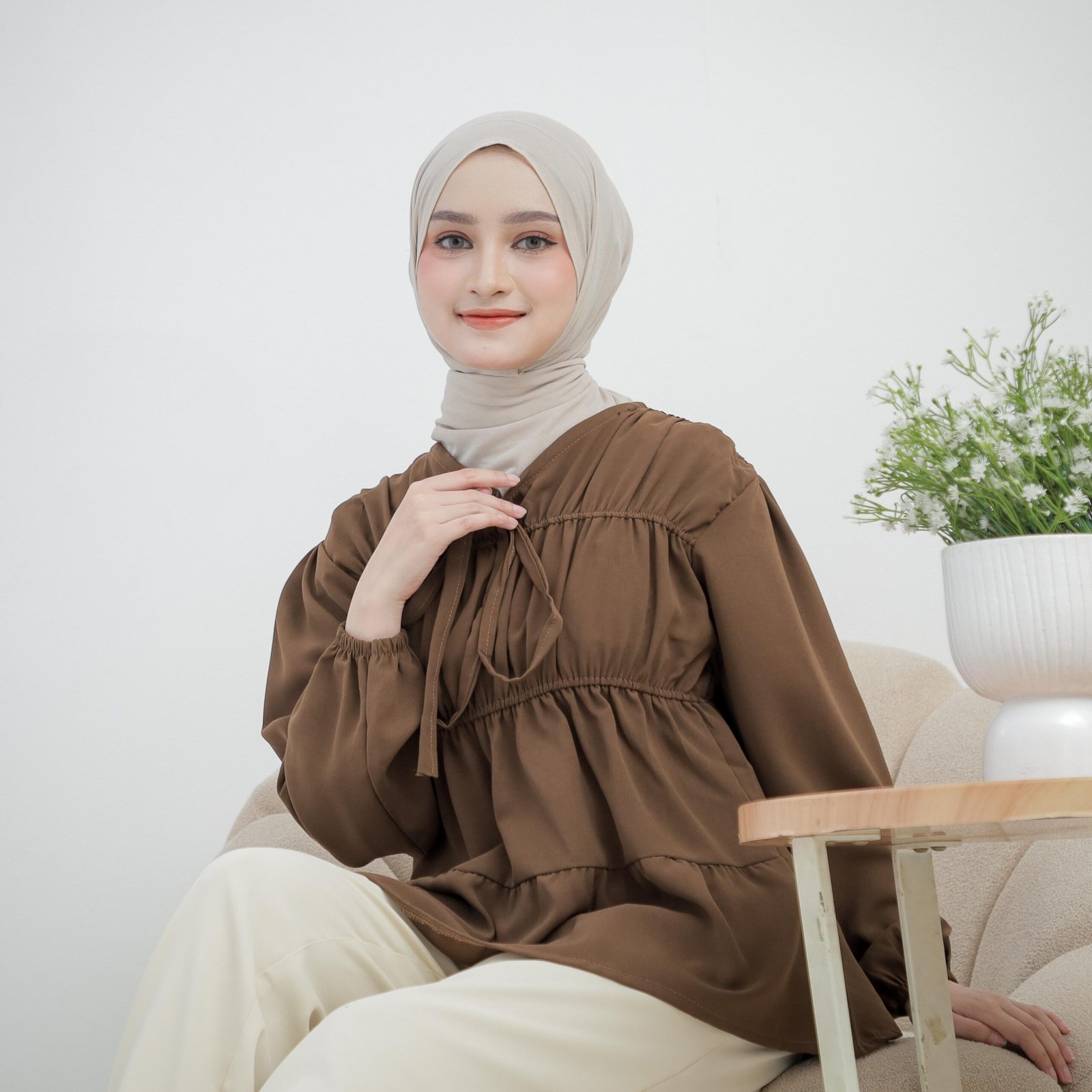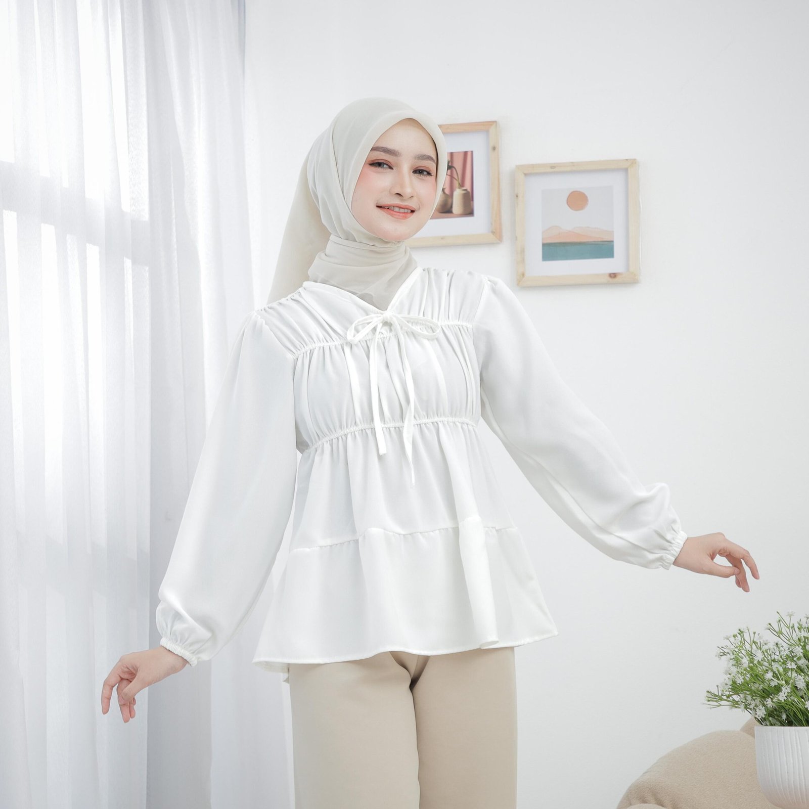Tampil anggun dan nyaman sepanjang hari dengan Atasan Wanita berbahan Sabrina premium. Desainnya simpel namun elegan, cocok untuk kamu yang suka gaya feminin, rapi, dan effortless. Potongan loose dengan aksen tali di bagian dada memberikan kesan manis sekaligus menutup area tubuh dengan nyaman.