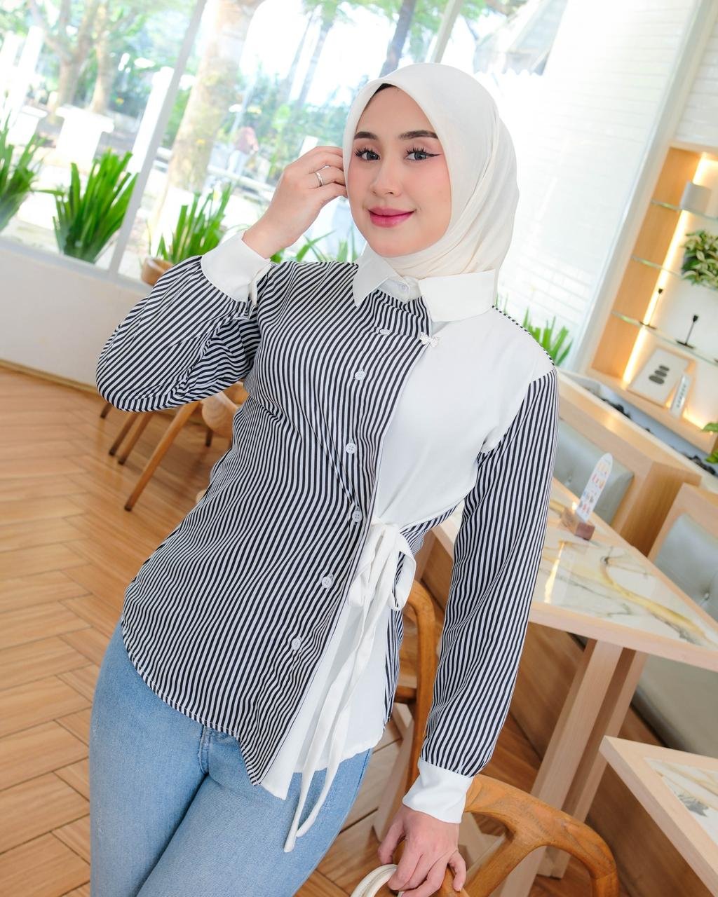 Bahan: Tiffany twill mix katun salur (adem, lembut, tidak kaku)