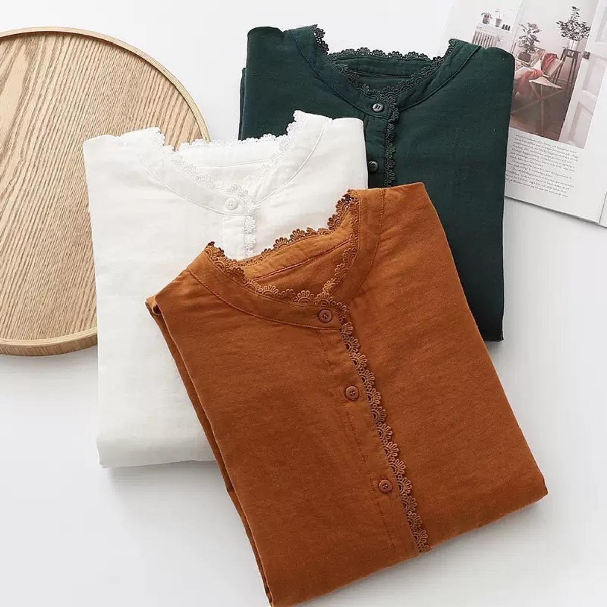 Desain minimalis tapi kece, dilengkapi full kancing depan. Bahan crinkle airflow ringan, tidak mudah kusut. Cocok untuk aktivitas sehari-hari. Style Korea kekinian dengan cutting clean dan jatuh pas di badan. Bisa dipakai ke kantor, kampus, atau hangout santai.
